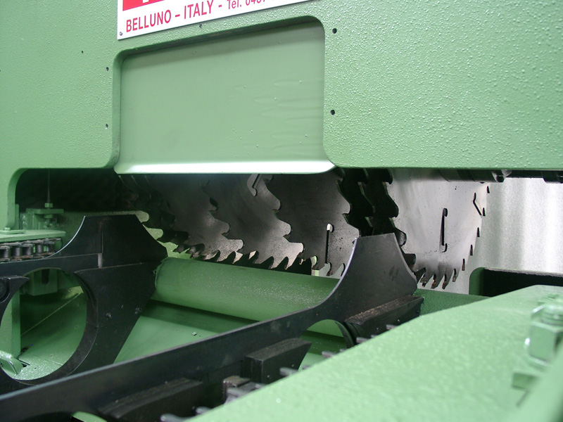 Refilatrice a quattro lame mobili e cannotti di estremità, con albero superiore; caricamento del tavolame sia laterale che longitudinale, avanzamento del pezzo in refilatura longitudinale. La macchina è comandata da un computer che misurata la tavola con sistemi opto-elettronici e scelta la qualità dall'operatore, determina l'ottimizzazione del taglio e la posizione degli assi delle lame e del caricatore e scaricatore automatici.